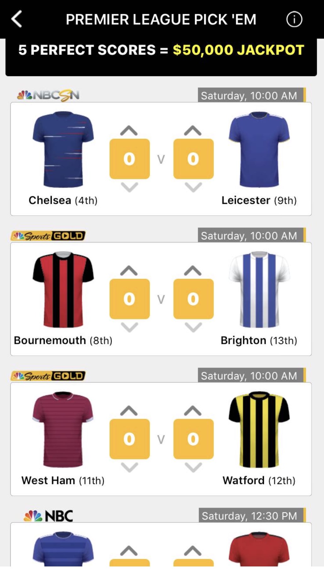 Foxbet Super 6 Apps On Google Play from play-lh.googleusercontent.com Nbc sports predictor, nbc sports görüntüleme deneyiminizi geliştirmek için tasarlanmıştır. Premier league pick 'em, nascar pick 'em, golf pick em' are a few other games on nbc sports. The contests will update in real time in the live results section of the app, so track your picks to see how you're doing. We are thrilled to partner with nbc sports to offer this new kind of sports gaming experience for a national audience. 7 after winning pennsylvania, nbc news projected. Touts will commonly post their record and units won as proof that they can indeed predict every game on the board. Live stream your favorite nbc sports content on nbc.com! Get free nbc sports coupon codes, promo codes & deals for jan.